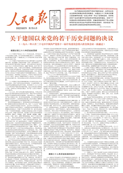 1981年7月1日,《人民日报》刊发《关于建国以来党的若干历史问题的决议》。资料照片